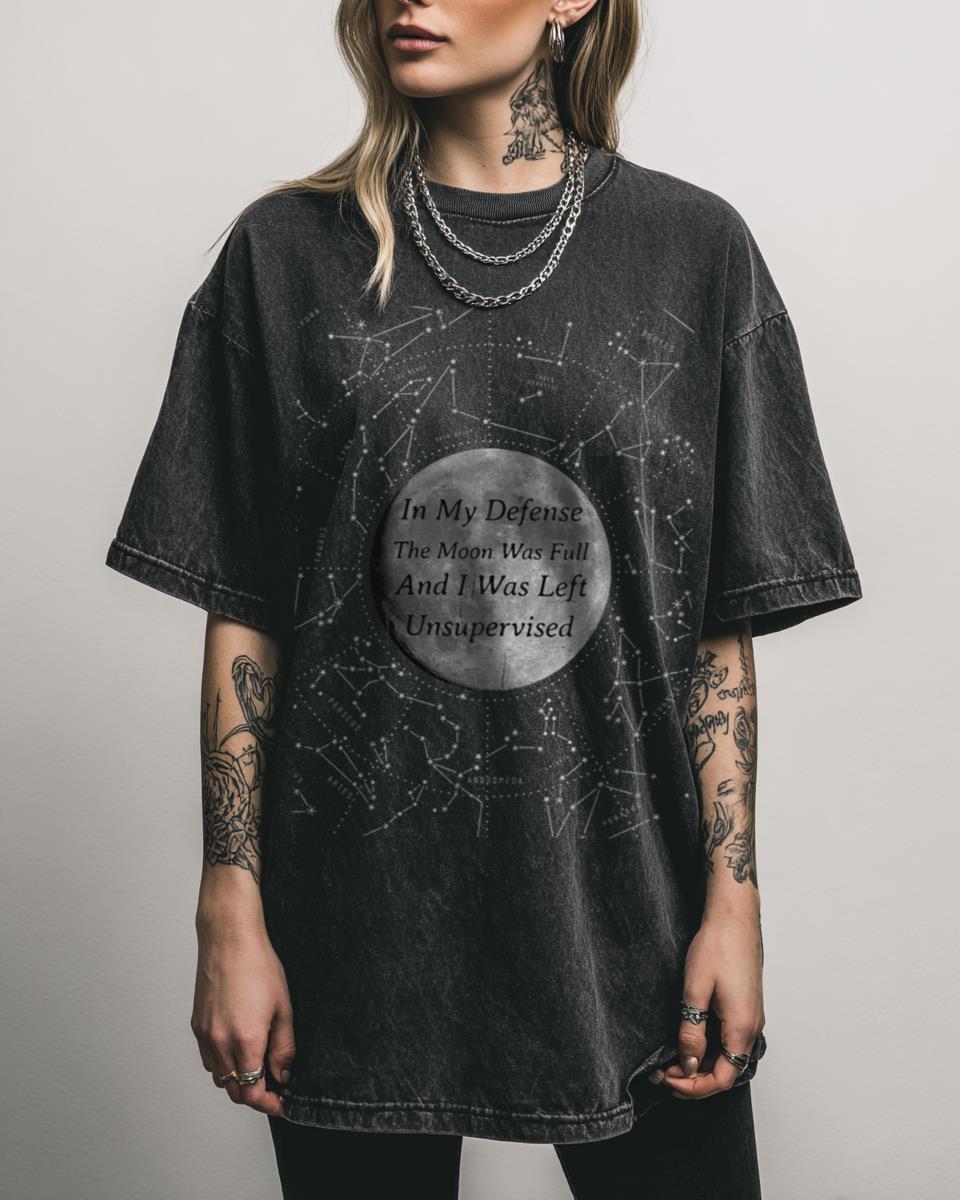 Ever blamed the moon for your wild adventures? Embrace your mischievous side with this humorous “In My Defense the Moon Was Full and I was Left Unsupervised” T-shirt. This witty quote, often inspired by mystical themes like Sailor Moon and the power of nature, is perfect for those who love a good laugh and a…