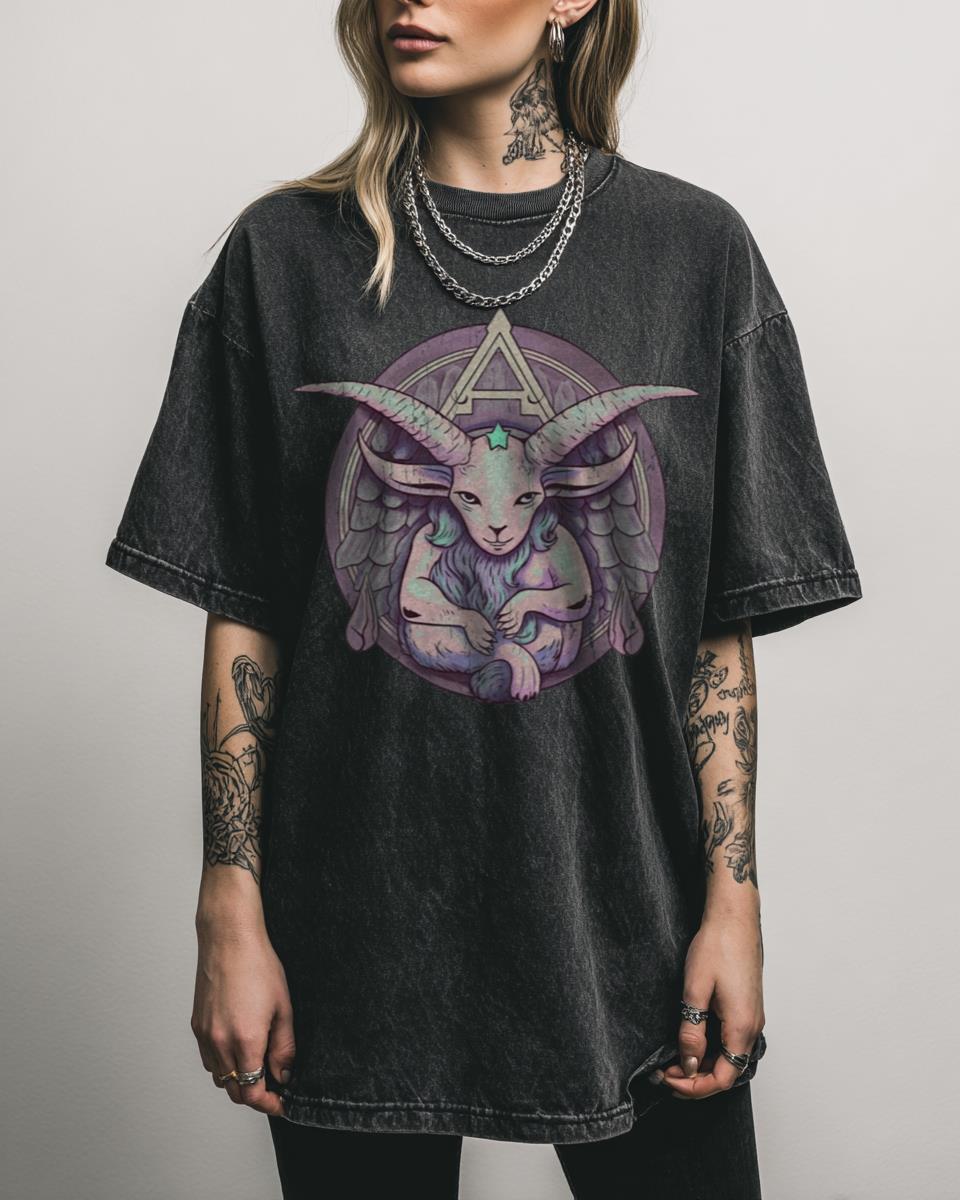 Who says evil can’t be adorable? Meet “Lil’ Baphy,” the cutest Baphomet you’ll ever see! This charming graphic features a chibi Baphomet, blending satanic imagery with an irresistible kawaii aesthetic. Perfect for metalheads, satanists with a sense of humor, or anyone who loves “cute but evil” designs, this T-shirt is a playful subversion of expectations….