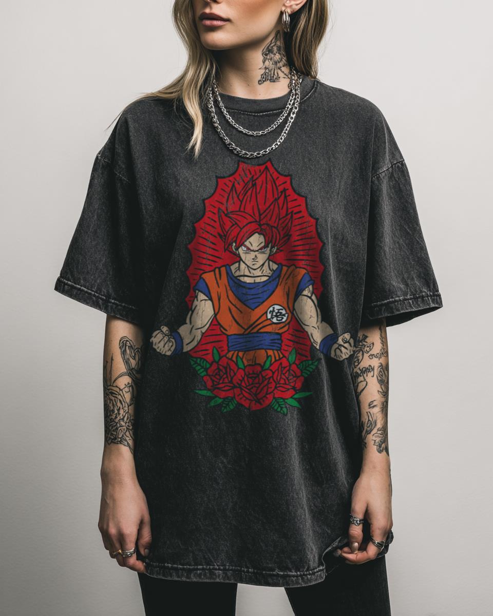 Looking for a hilarious and unique twist on your favorite Saiyan warrior? Get a laugh with the ‘Saint Super Saiyan God Goku’ design, a funny parody blending traditional Mexican saint art with the iconic Dragon Ball character. This humorous graphic is perfect for fans of Goku, Saiyans, and unique tattoo-style comedy. Why This Funny Goku…