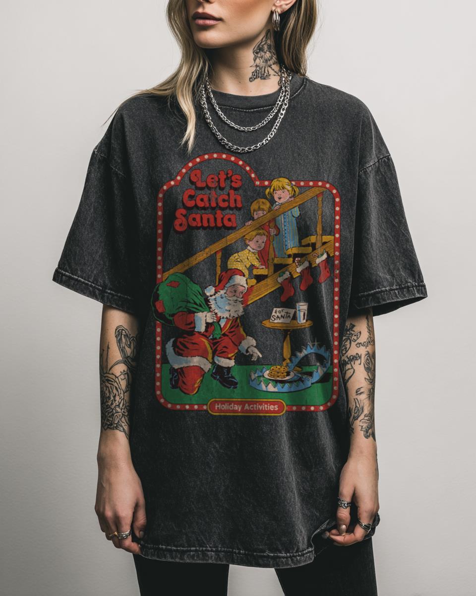 Ready to add some retro fun to your festive wardrobe? Get into the holiday spirit with a mischievous twist with this ‘Let’s Catch Santa’ design! This vintage-inspired artwork, reminiscent of 70s and 80s aesthetics, brings humorous nostalgia to Christmas, perfect for those who love festive fun, classic humor, and a touch of retro charm during…