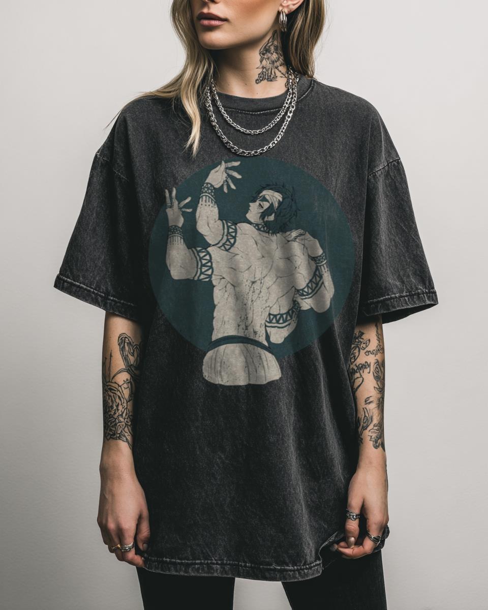 What Makes This Gautama Buddha Record of Ragnarok T-Shirt Unique? Embrace the power of the gods with this Gautama Buddha Record of Ragnarok T-shirt. This fan-created design, inspired by the epic manga and anime series Shuumatsu no Valkyrie, is rendered on a black acidwash tee, perfect for fans of divine battles. Why This Anime Tee…