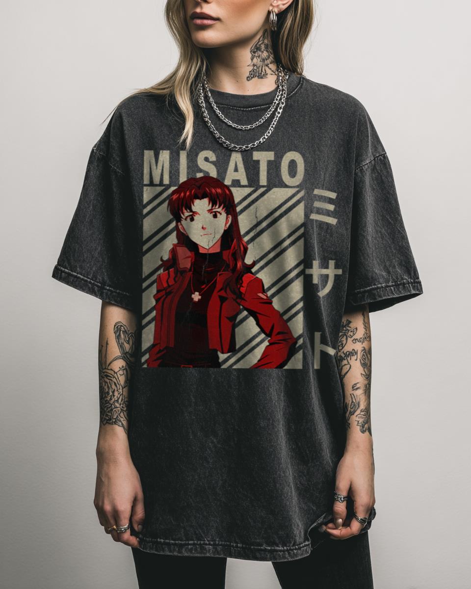 Step into the world of NERV with Misato Katsuragi! Embrace the iconic style of Misato Katsuragi with this stunning vintage art design from Neon Genesis Evangelion. Perfect for fans of the classic anime and manga, this shirt pays tribute to the beloved operations director, capturing her cool and complex persona, making it an essential piece…