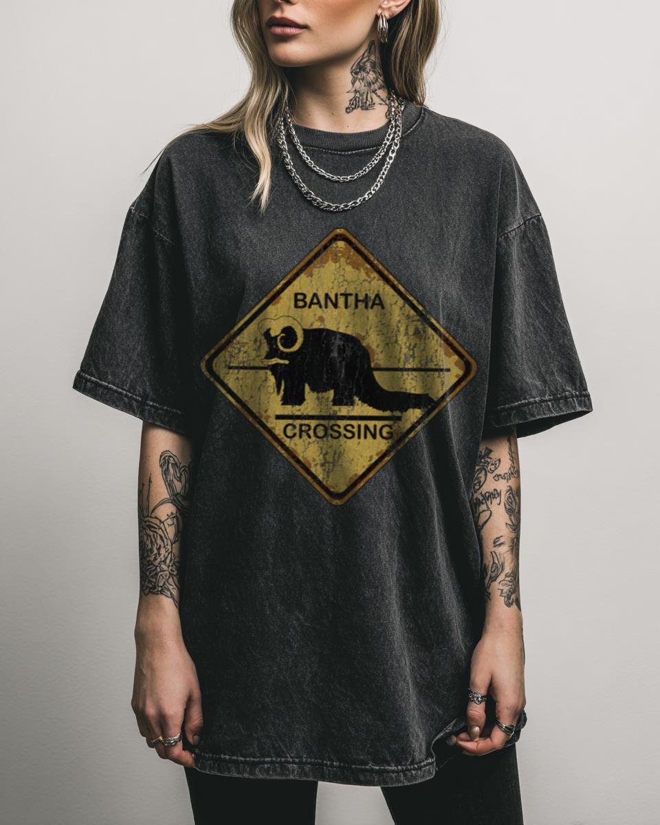 What Makes This Bantha Crossing T-Shirt a Sci-Fi Fan Favorite? Navigate the dunes of Tatooine with a touch of humor in this vintage-style Bantha Crossing traffic sign T-shirt. Featuring a clever, fan-created design inspired by the iconic Star Wars universe, this black acidwash tee is perfect for any sci-fi enthusiast. Why This Is the Ultimate…