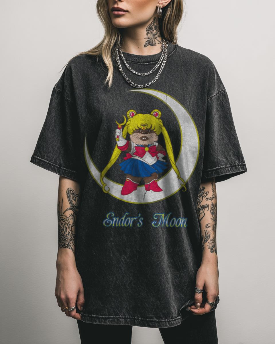What happens when the Empire meets the Magical Girls of the galaxy? Prepare for an epic pop culture mashup with this hilarious ‘Endor’s Moon’ graphic t-shirt! This clever design brilliantly blends the worlds of Star Wars and Sailor Moon, reimagining the forest moon of Endor with a touch of anime magic. Featuring Ewoks and iconic…