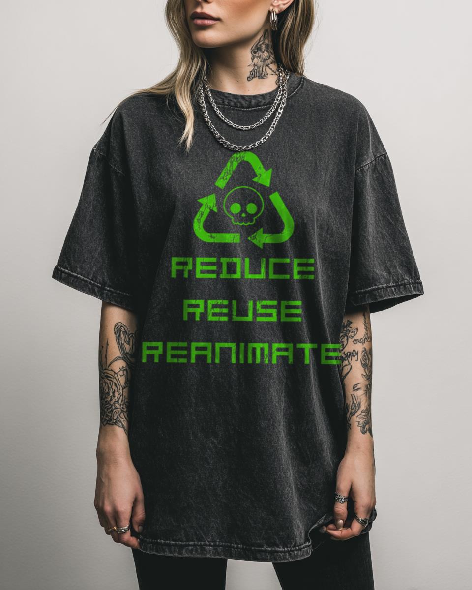 Ready to embrace the undying legions of the Necrons? Unleash your inner Overlord with this clever “Necron-mancy Reduce Reuse Reanimate” design! This Warhammer 40K themed tee offers a witty twist on the Necron’s relentless reanimation protocols, blending dark fantasy with a touch of humor. It’s the perfect apparel for tabletop gamers, Warhammer enthusiasts, and fans…