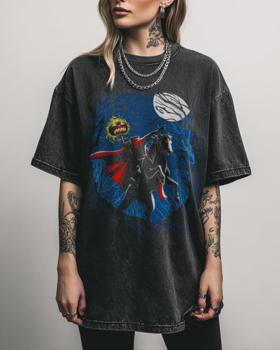 Dare to confront the legend of the Headless Horseman? Gallop into fright night with this ‘HEADLESS HORSEMAN!’ T-shirt, a chilling tribute to the classic American horror legend! Perfect for Halloween, fans of spooky folklore, and those who appreciate gothic tales. This design captures the eerie essence of the Headless Horseman, making it a fearsome and…