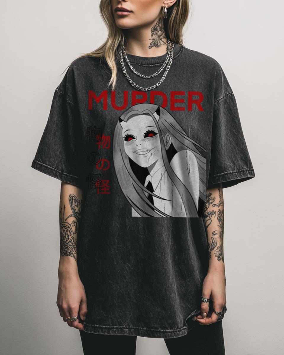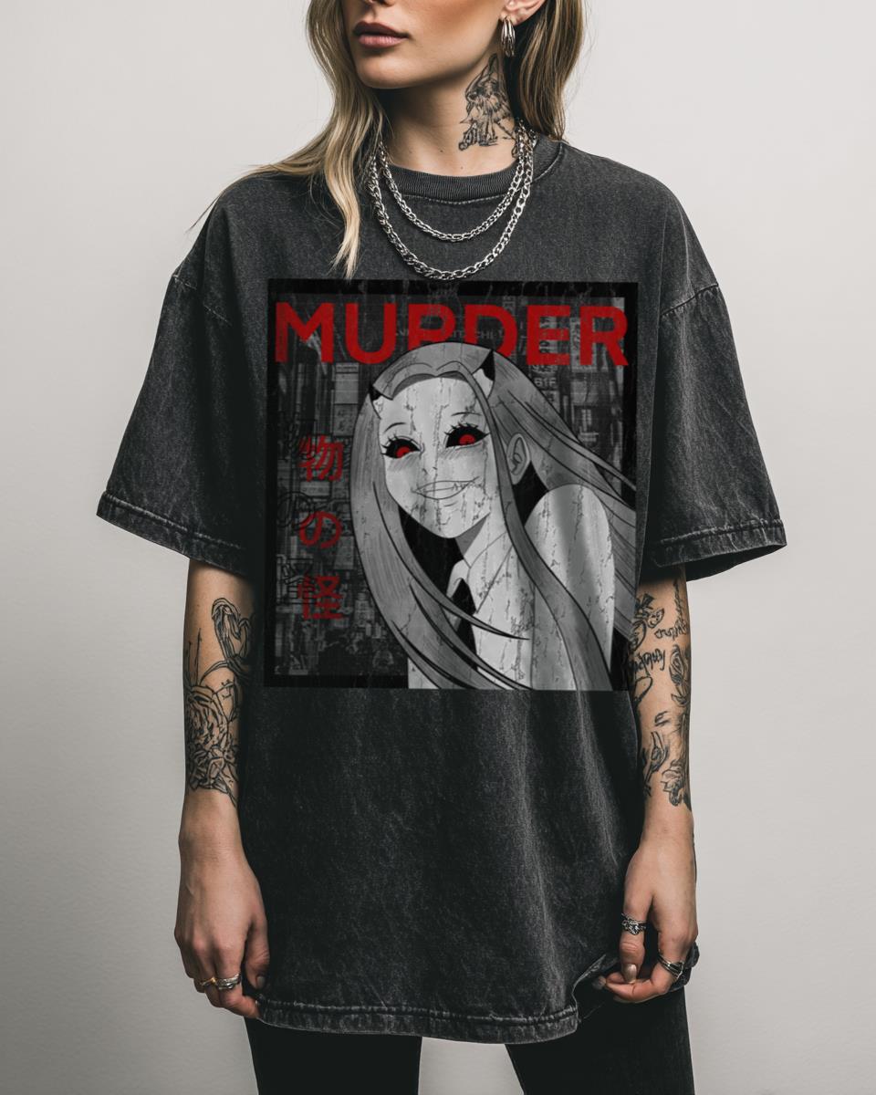 Are you fascinated by the darker side of anime and its most iconic yanderes? Dare to wear this ‘Gasai Yuno Covered in Blood Waifu’ T-shirt, a chilling tribute to the infamous character from Mirai Nikki (Future Diary). This design is perfect for fans who appreciate psychological anime, gore, and the compelling complexity of a yandere…