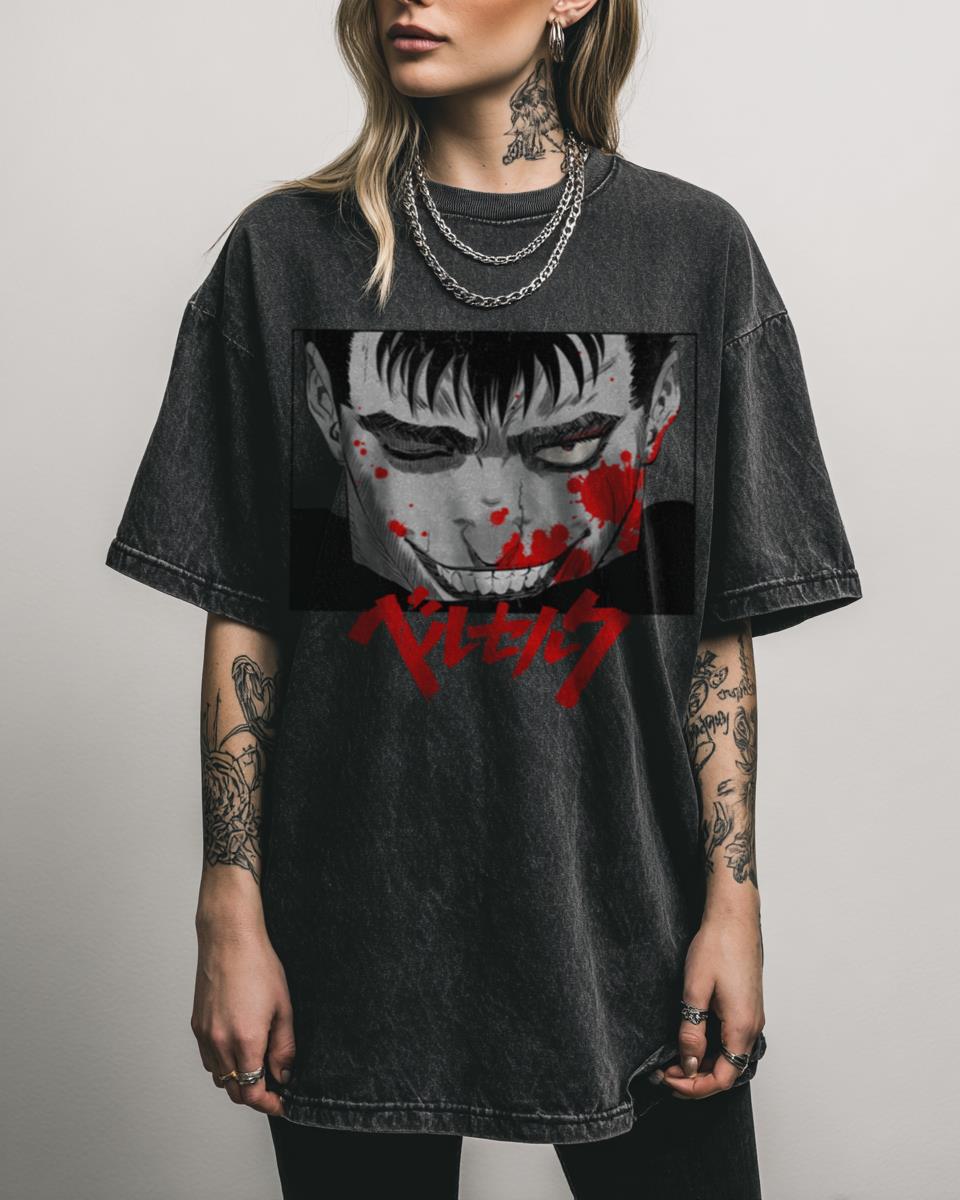 Why is This Berserk Guts ‘Scribble Berserker’ Tee Essential? Channel the raw power of the Black Swordsman with this Berserk Guts ‘Scribble Berserker’ T-shirt. This dynamic anime art piece, inspired by the dark fantasy manga, features Guts in his iconic Berserker armor. Printed on a unique black acidwash, it’s a must-have for fans. Key Features…