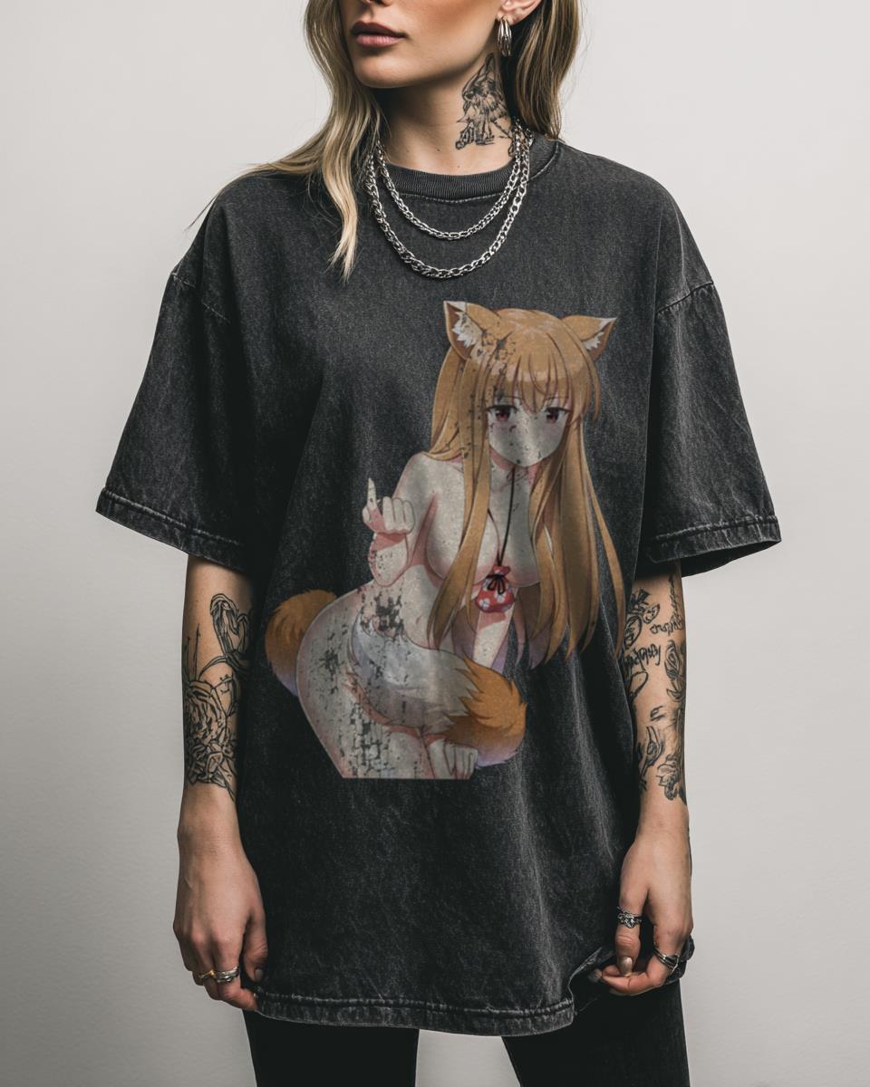 Find Your Favorite Anime Waifu with This Holo Spice and Wolf Tee! Celebrate the captivating charm of Holo with this Holo Spice and Wolf Anime Waifu T-shirt, a fan-inspired design featuring the beloved wolf girl. This striking anime graphic tee on a cool black acidwash background is perfect for any otaku or weeb who cherishes…
