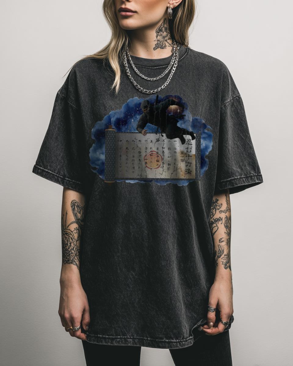 Are you drawn to the ancient wisdom and secret codes of the ninja? Uncover the secrets with ‘The Ten Hidden Ninja Principles Scroll’ graphic tee, a tribute to the legendary shinobi code. This design features a Japanese scroll, embodying the martial arts philosophy, stealth, and wisdom of ancient Japan. It’s a powerful statement for fans…