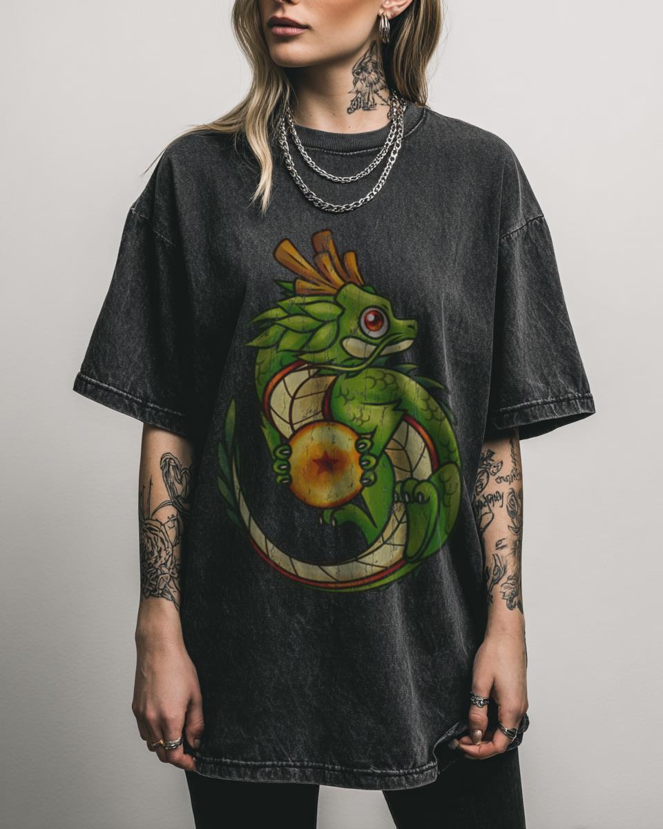 What Makes This Dragon Ball Shenron Chibi Cute Anime Tee Adorable? Summon wishes in the cutest way possible with this Dragon Ball Shenron Chibi Cute Anime Acidwash Tee. Featuring an adorable fan-inspired chibi version of the Eternal Dragon, Shenron, this black acidwash shirt is perfect for any Dragon Ball fan who loves a touch of…