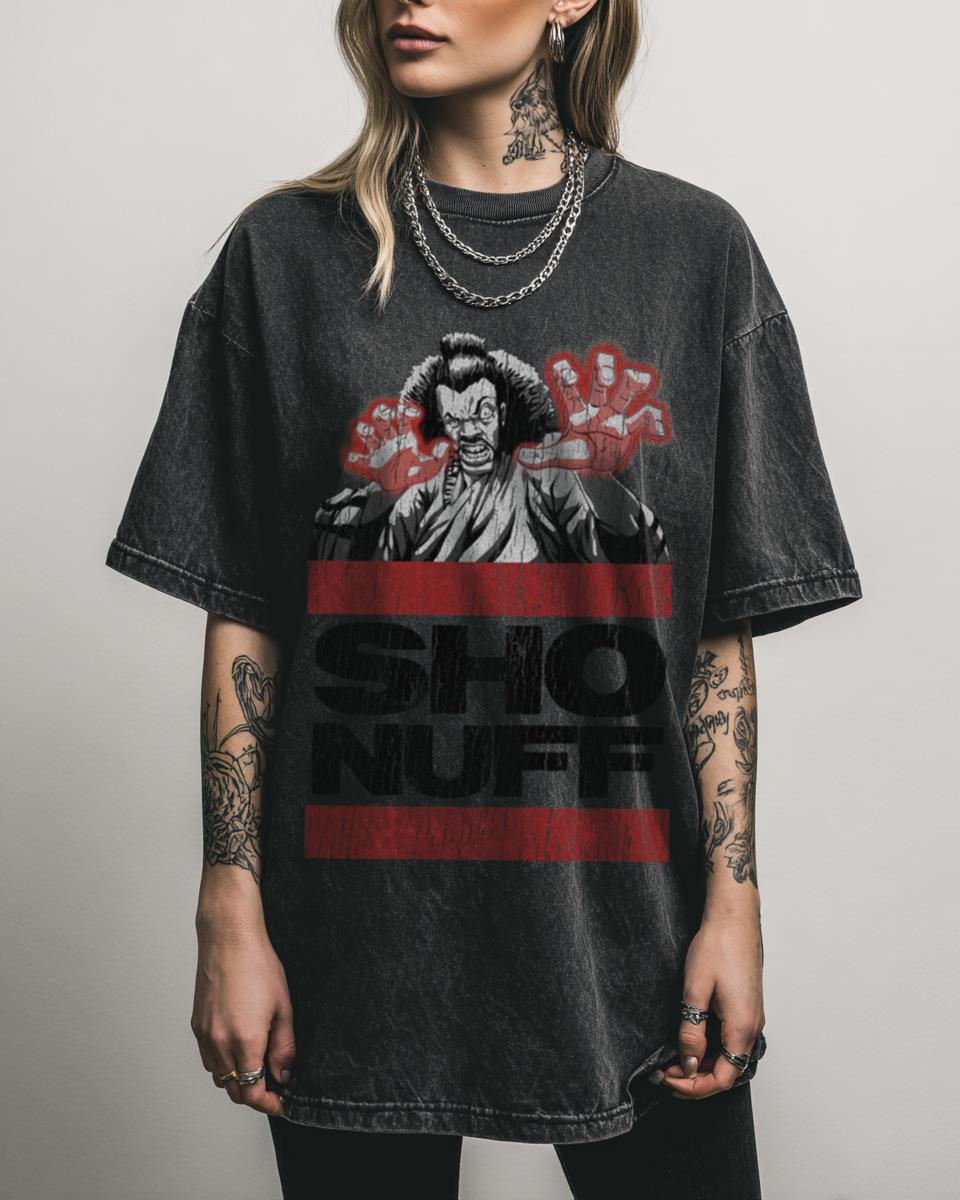 Who’s the master? SHO NUFF! Celebrate the iconic villain from ‘The Last Dragon’! This bold graphic tee features ‘SHO NUFF’, the legendary Shogun of Harlem from the cult classic 80s martial arts film, ‘The Last Dragon’. It’s a must-have for fans of retro cinema, martial arts, and memorable movie villains. Why You’ll Love This: Bold…