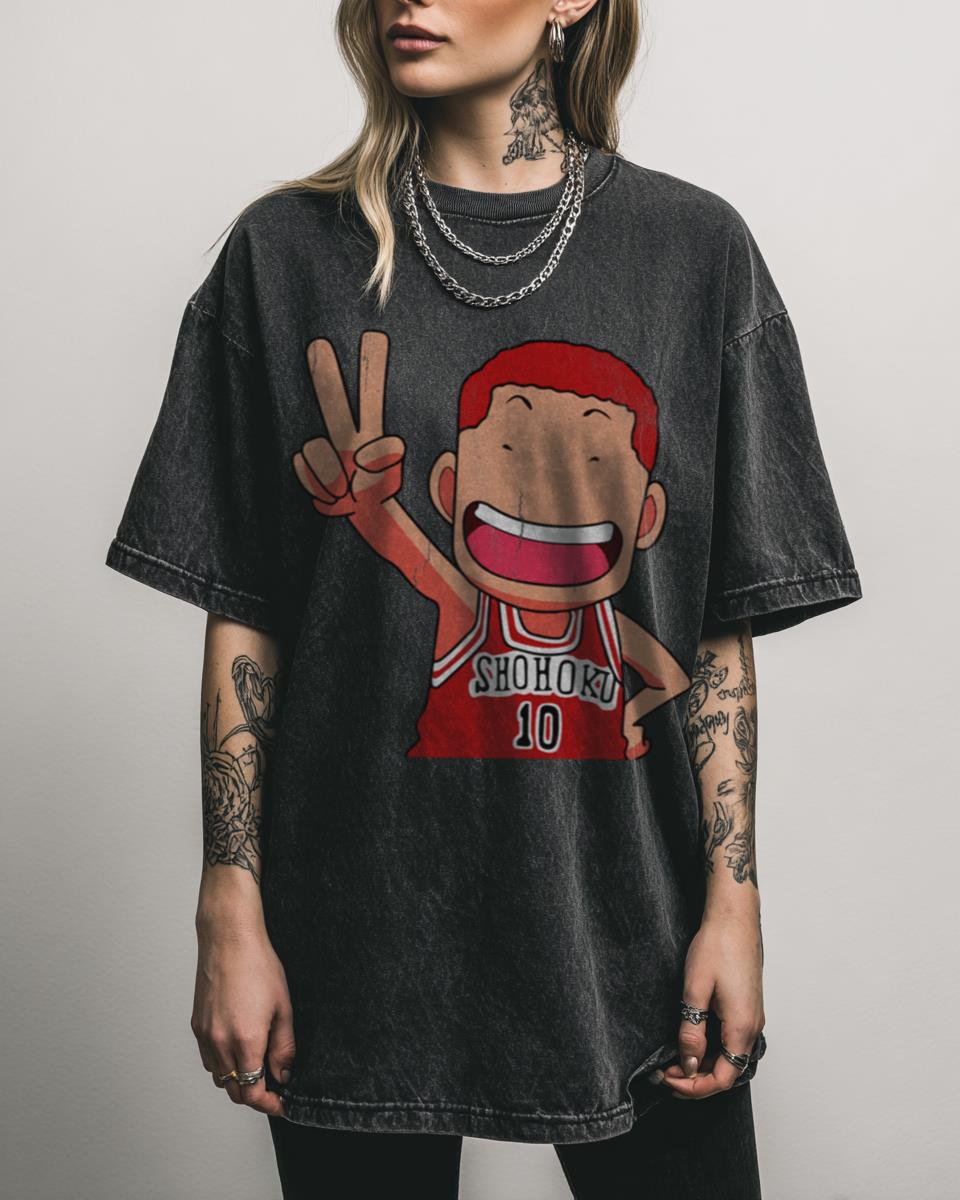 Get Your Game On with This Funny Sakuragi Hanamichi Chibi Tee! Score big with this hilarious **Sakuragi Hanamichi Chibi Peeker t-shirt**, inspired by the iconic Slam Dunk anime and manga. Featuring a cute and funny graphic of the basketball star, this **black acidwash tee** is perfect for fans of Shohoku’s ‘Tensai’ and Japanese sports anime….