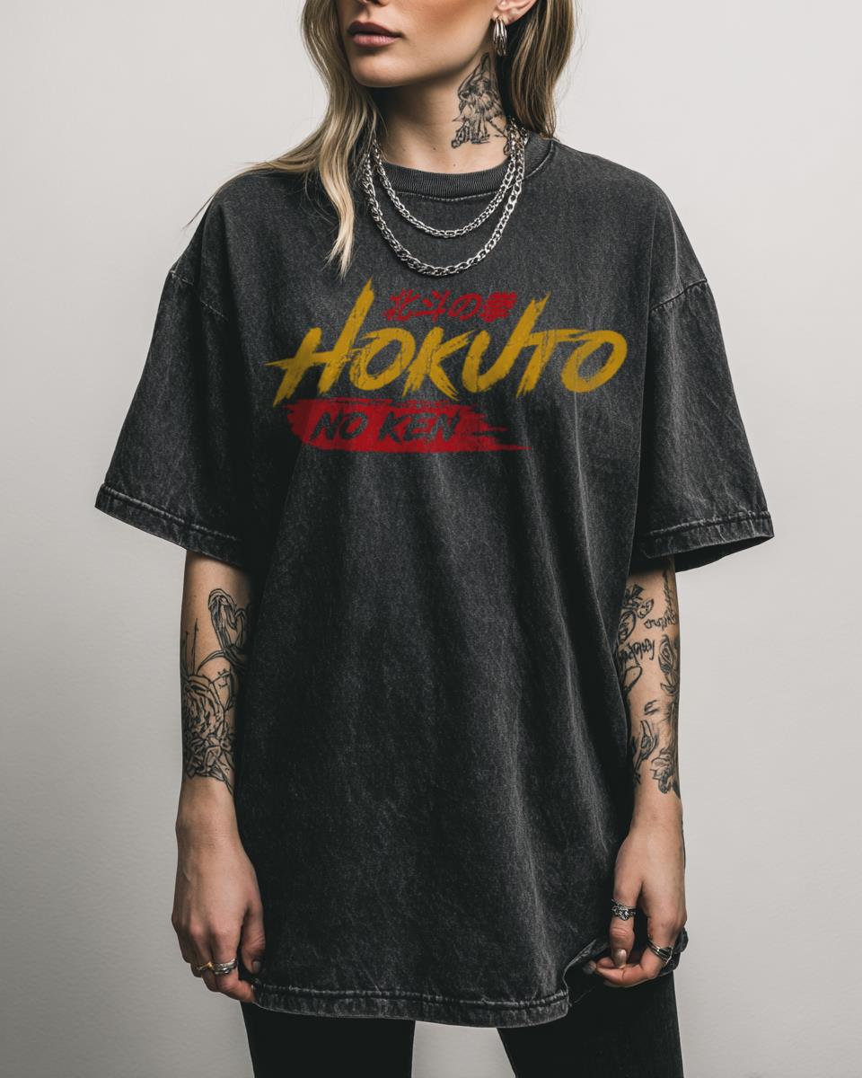 Ready to survive in a post-apocalyptic wasteland? Unleash the power of Hokuto Shinken with this awesome ‘Hokuto No Ken 80s Dystopia’ graphic t-shirt. This design pays tribute to ‘Fist of the North Star’ and its iconic hero Kenshiro, capturing the gritty, post-apocalyptic aesthetic of the beloved 80s anime and manga. A must-have for fans of…