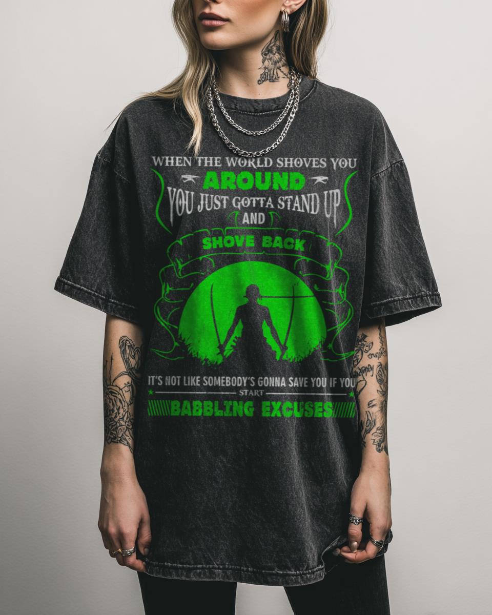 Ready to embody the unwavering determination of the Pirate Hunter? Channel the fearless spirit of Roronoa Zoro with this “Zoro Quote” One Piece anime graphic tee! Featuring a powerful quote from the Straw Hat Pirates’ master swordsman, this design is a must-have for any fan of the epic saga. Show your dedication to becoming the…
