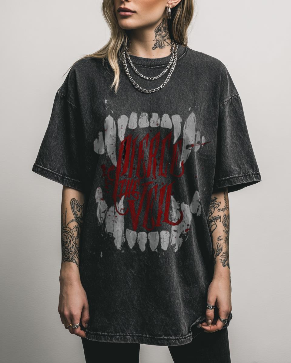 Show Your Fandom with a Pierce the Veil Red Graphic Tee? Declare your allegiance to the scene with this striking Pierce the Veil red graphic tee! Featuring a bold design inspired by the iconic pop-punk band, this black acidwash shirt is a must-have for PTV fans, music lovers, and anyone who appreciates edgy band merchandise….