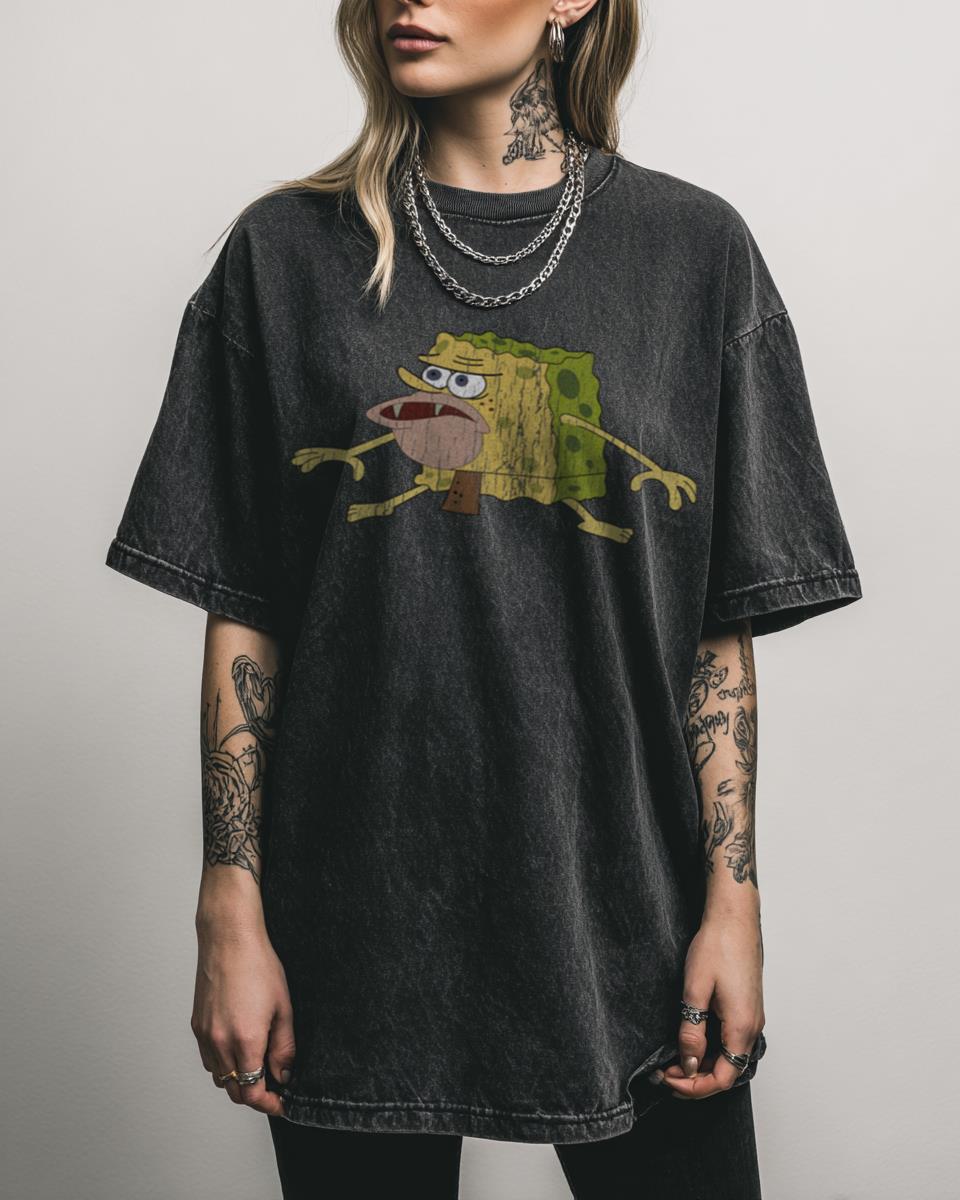 Why is This Caveman Spongebob Meme Tee So Popular? Relive a classic internet moment with this Caveman Spongebob Meme Cartoon Graphic Tee. Featuring the iconic “Primitive Spongebob” on a black acidwash 100% cotton shirt, it’s a nostalgic piece for any fan of the TV show and internet culture. Standout Features of This Spongebob Shirt: Iconic…