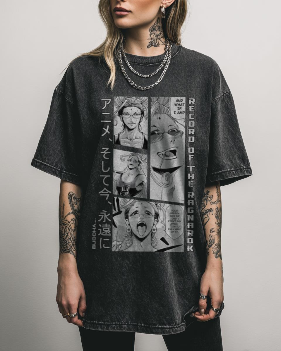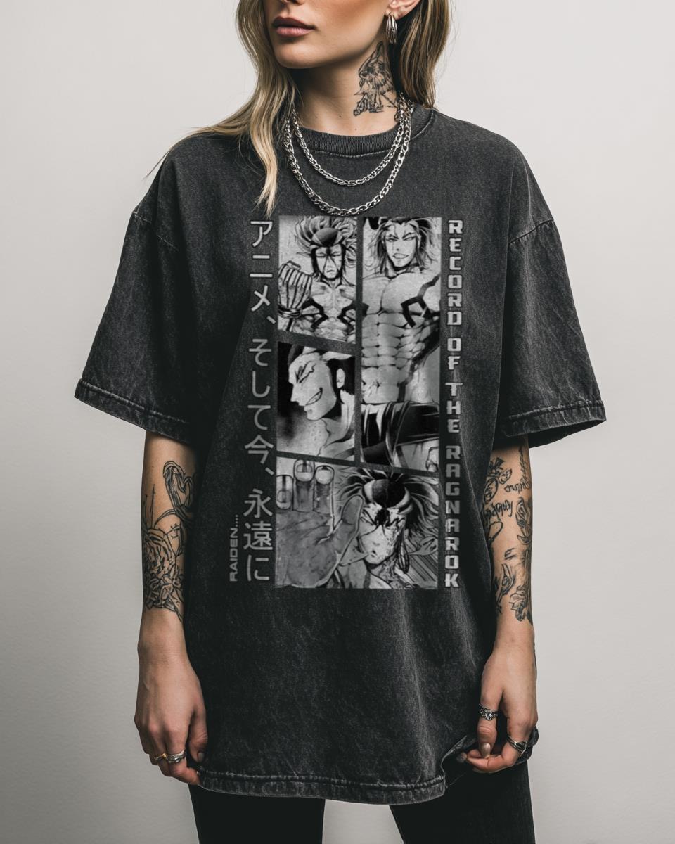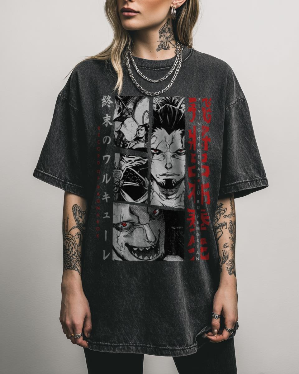 Are you ready for the ultimate divine vs. human showdown? Embrace the irreverent charm of Buddha with this ‘Record of Ragnarok Buddha’ Black Acidwash T-shirt! This design captures the cool, funny, and powerful presence of Buddha from the popular anime and manga series, Record of Ragnarok (Shuumatsu No Valkyrie). It’s a perfect piece for otaku…