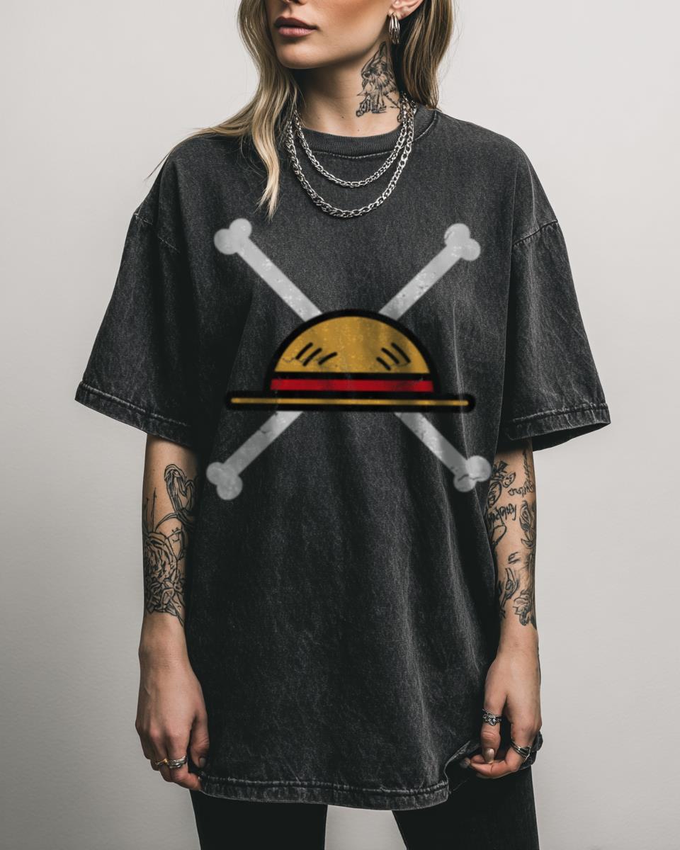 Ready to set sail on the Grand Line with the King of the Pirates? Embrace the adventurous spirit of Monkey D. Luffy with this stylish vector art design! Featuring the iconic captain of the Straw Hat Pirates in a clean, minimalist illustration with a touch of gold, this tee is perfect for One Piece fans…