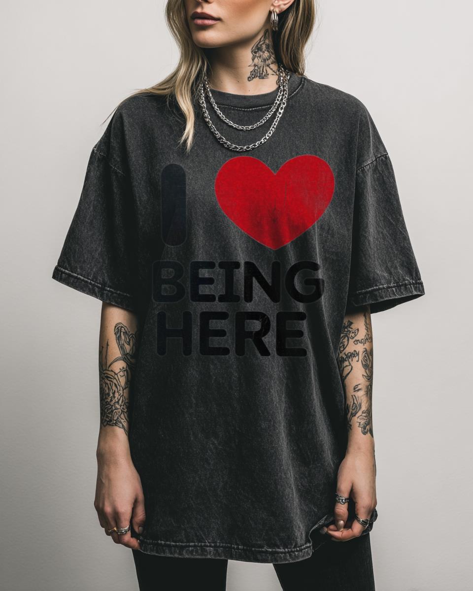 Are you looking for a simple yet powerful way to express gratitude and positivity? Wear your heart on your sleeve with this ‘I Love Being Here’ T-shirt. This minimalist design features a heartwarming message that promotes mindfulness, self-love, and appreciation for the present moment. It’s a perfect choice for anyone who embraces positive affirmations and…