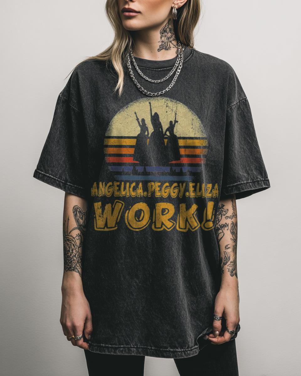 Are you a devoted fan of Hamilton and the iconic Schuyler Sisters? Celebrate the strength and spirit of the Schuyler Sisters with this ‘Vintage Angelica, Eliza, and Peggy Work’ graphic t-shirt. This design pays tribute to the beloved characters from the hit musical Hamilton, capturing their essence in a classic, vintage-inspired style. It’s a perfect…