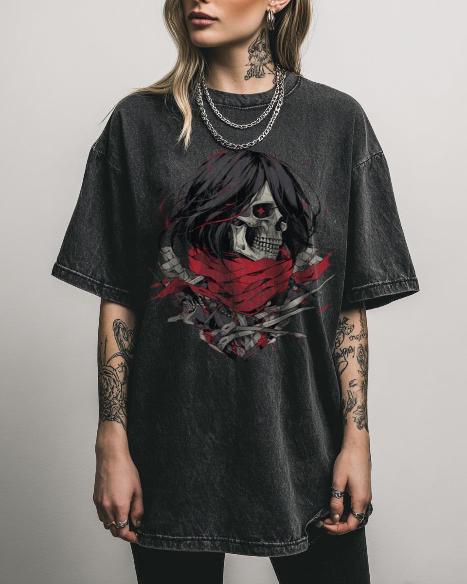 Are you a loyal soldier of the Survey Corps? Embrace the darker side of humanity’s fight with this Mikasa Skull Attack on Titan T-Shirt! This design features a stylized skull representing Mikasa Ackerman, a powerful symbol of her unwavering resolve and the grim realities of the AOT world. It’s a striking piece for dedicated fans…