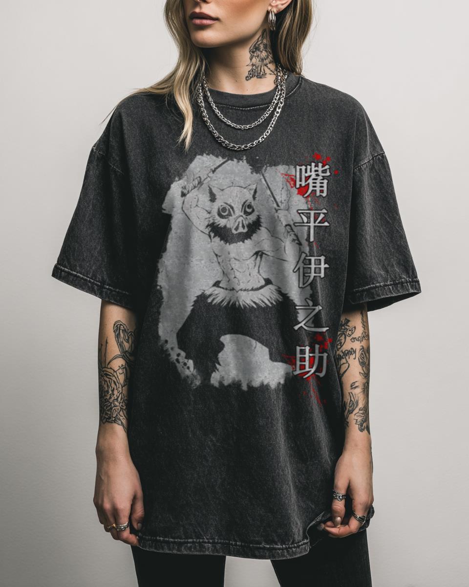 Why This Inosuke Demon Slayer T-Shirt is Perfect for Fans? Unleash your wild side with this Inosuke Demon Slayer T-shirt, a fan-created design celebrating the iconic boar-headed character from Kimetsu no Yaiba. This unique black acidwash tee is a must-have for any admirer of Inosuke’s feral charm and “Head Empty” philosophy. Features for Every Demon…