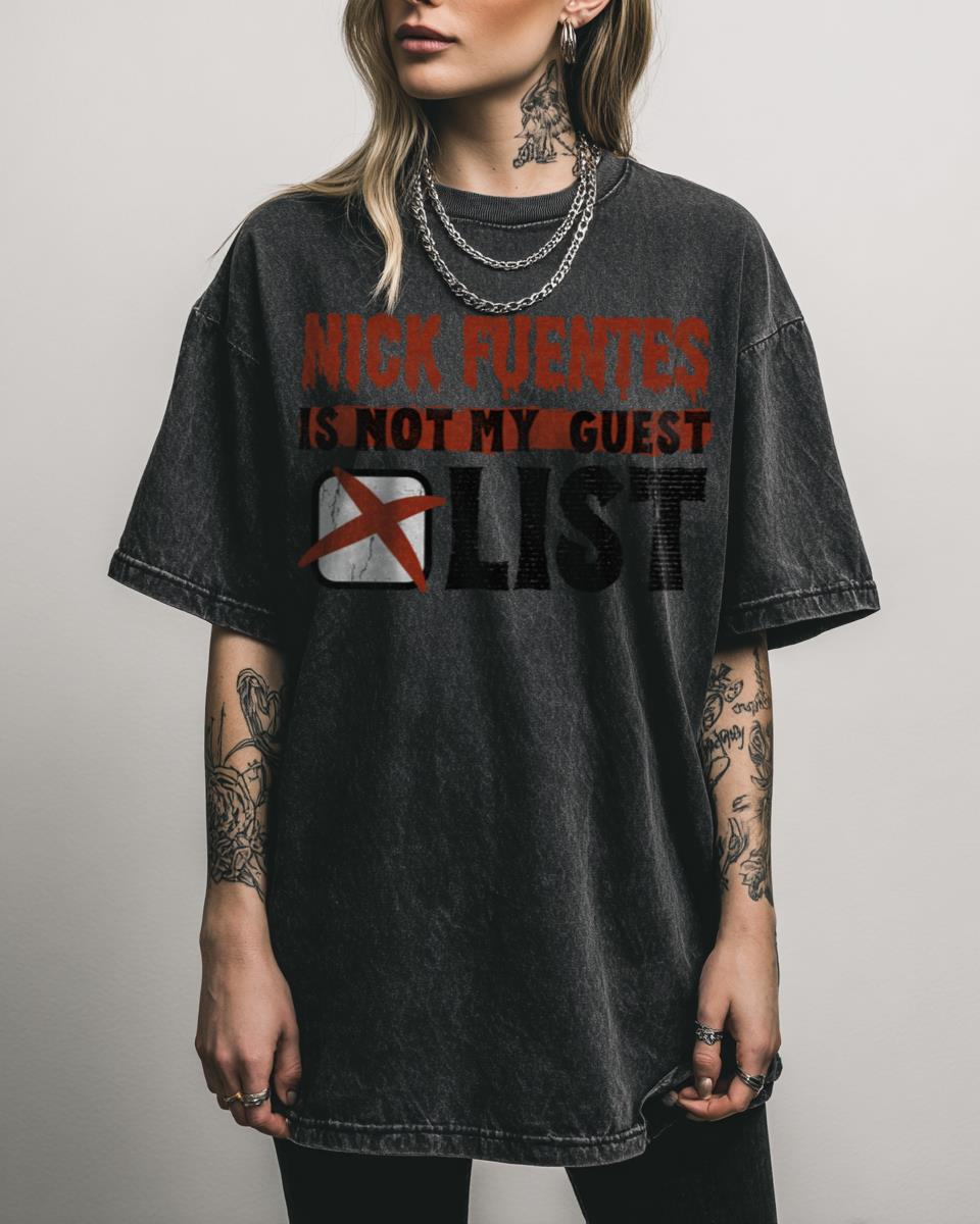 Make your stance clear and loud! Express your progressive values and reject hate with this powerful “Nick Fuentes Is Not on My Guest List” T-shirt. This bold, text-based design is perfect for activism, protests, or simply making a statement against divisive figures. Wear your principles with pride and spark important conversations. Why You’ll Love This…