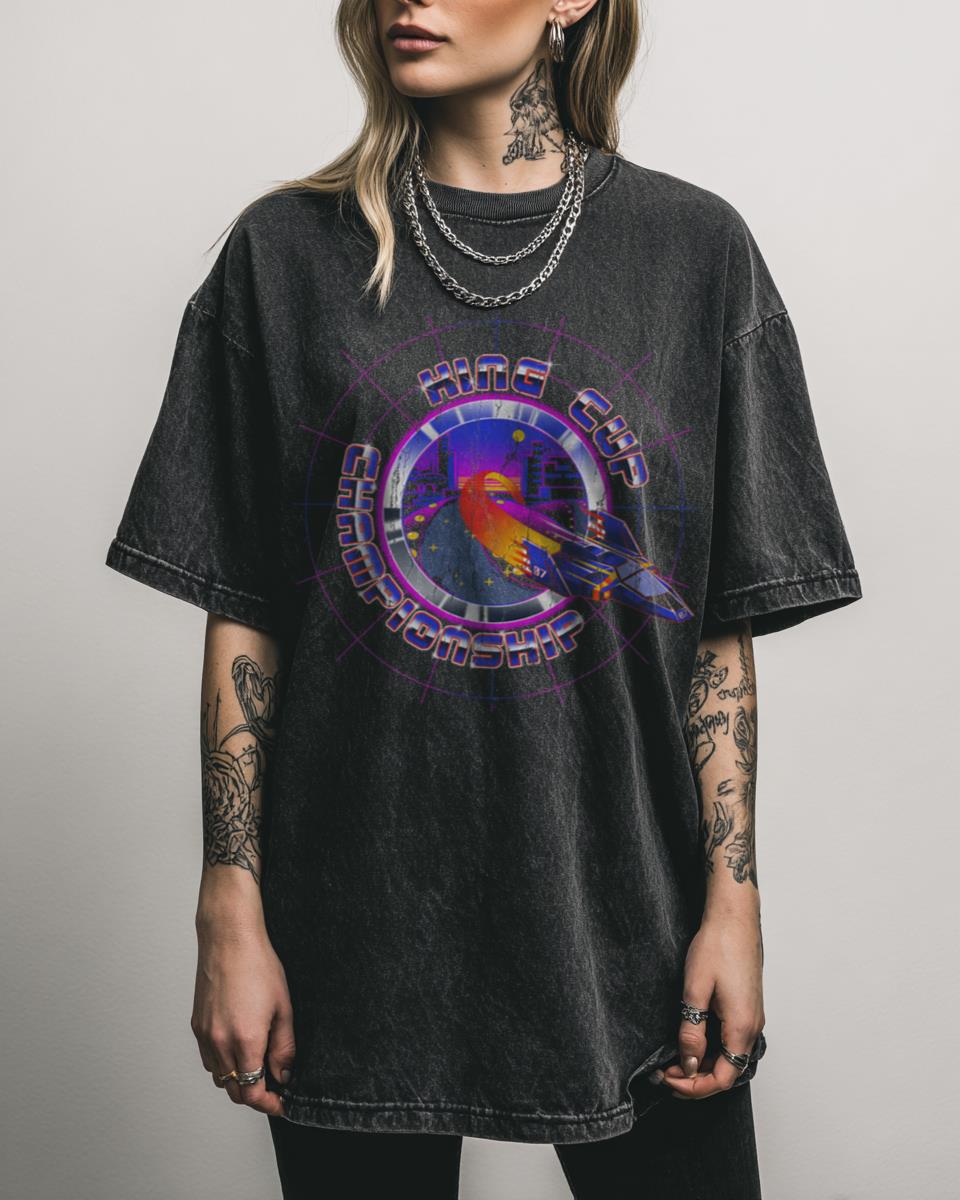 Ready to race to victory in the futuristic world of F-Zero? Commemorate the ultimate racing challenge with this ‘King Cup Championship’ t-shirt, inspired by the classic Nintendo game and anime series, F-Zero. Featuring elements reminiscent of Captain Falcon and the iconic 80s aesthetic, this design is perfect for retro gaming enthusiasts and fans of high-speed…