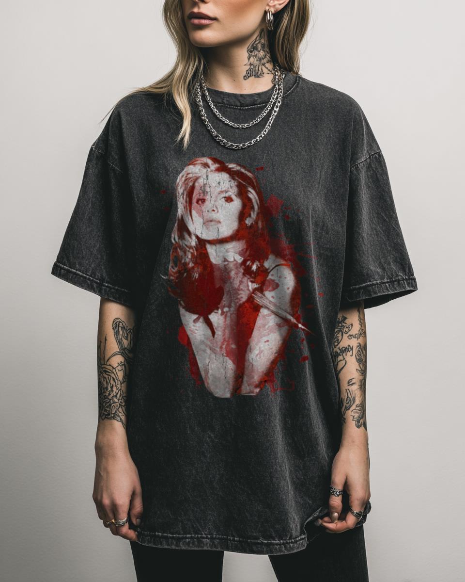 Ready to stake some vampires in style? Channel your inner slayer with this ‘Splatter Buffy’ graphic tee, a dynamic fan art piece inspired by Buffy the Vampire Slayer. This design captures the intense action and dark aesthetic of the Whedonverse, perfect for fans of Buffy, Giles, Willow, and Xander. Why You’ll Love This: Dynamic ‘Splatter…