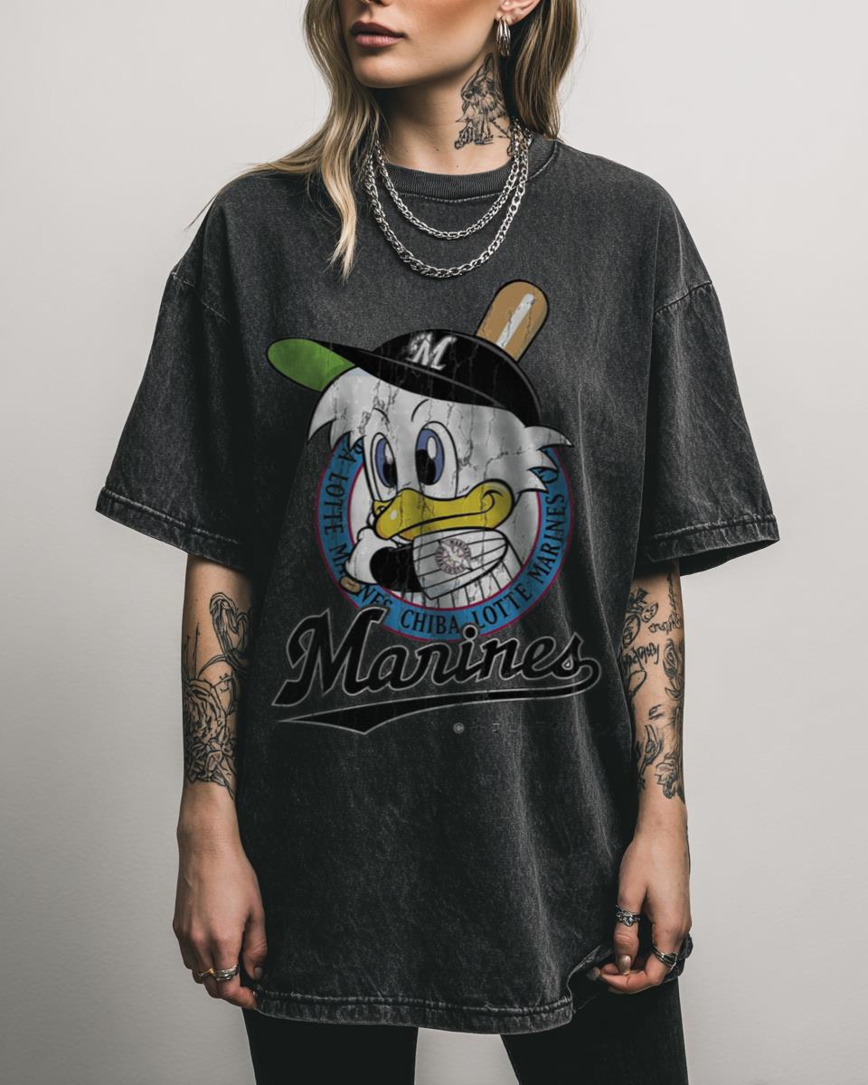 Show your support for one of Japan’s most iconic professional baseball teams? Step up to the plate with this ‘Lotte Marines Chiba Nippon Baseball NPB Logo’ graphic tee. This design proudly displays the emblem of the Chiba Lotte Marines, making it an essential piece for fans of Japanese professional baseball (NPB) and sports enthusiasts alike….
