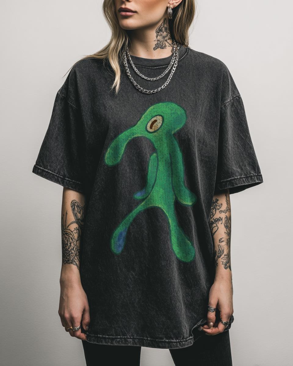 Why is This Spongebob Squidward Big Face Portrait Tee So Iconic? Channel your inner grumpy genius with this Spongebob SquarePants Squidward big face portrait t-shirt, perfect for a fun and recognizable look. Featuring the iconic curmudgeon’s large face from the beloved cartoon on a unique black acidwash, this fan-created tee is ideal for Spongebob enthusiasts,…