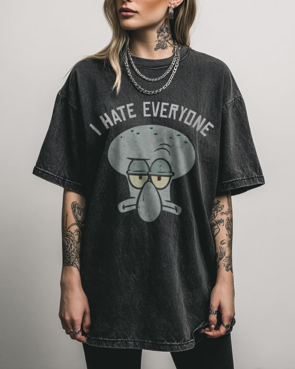 Why is This Spongebob Squidward “I Hate Everyone” Tee So Relatable? Express your inner curmudgeon with this Spongebob SquarePants Squidward “I Hate Everyone” t-shirt. Featuring Squidward’s classic grumpy face and iconic quote on a unique black acidwash, this fan-created tee is perfect for Spongebob enthusiasts who appreciate his sarcastic attitude and relatable anti-social humor. Key…