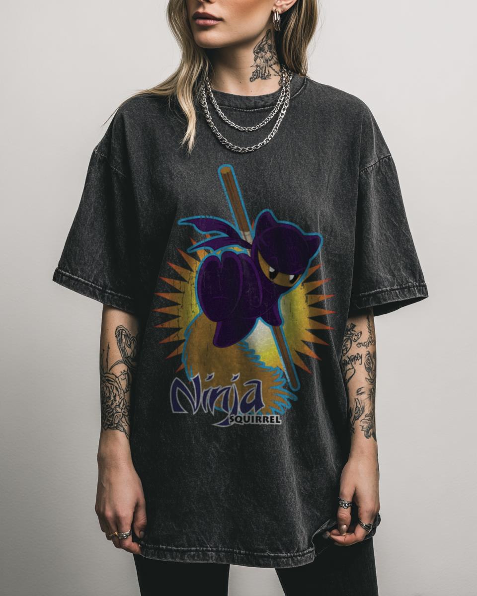 What Makes This Kawaii Ninja Squirrel T-Shirt a Must-Have? Unleash your inner stealth with our **Kawaii Ninja Squirrel T-Shirt**, featuring an adorable, fan-created Japanese anime-style graphic. This unique black acidwash tee combines playful charm with a cool aesthetic, making it a standout piece for any anime fan or animal lover. Why This Unique Graphic Tee…