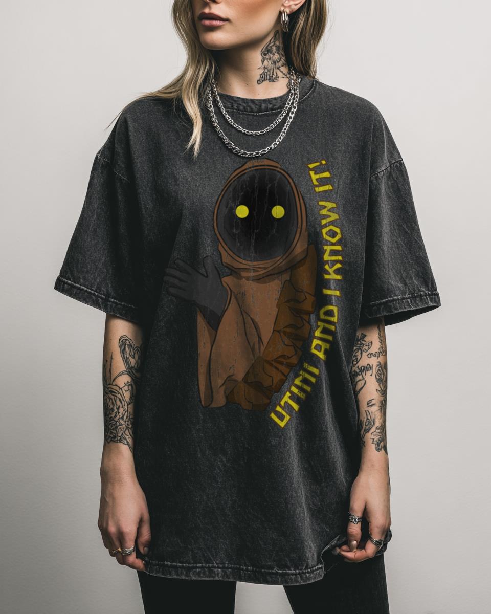 Looking for a fun and cheeky twist on your favorite sci-fi universe? Unleash your inner ‘Sexy Scavenger’ with this playful acidwash T-shirt, featuring a humorous take on the iconic Jawa from Star Wars. This science fiction-inspired design is perfect for fans who appreciate a bit of wit and charm in their fan apparel. It’s a…