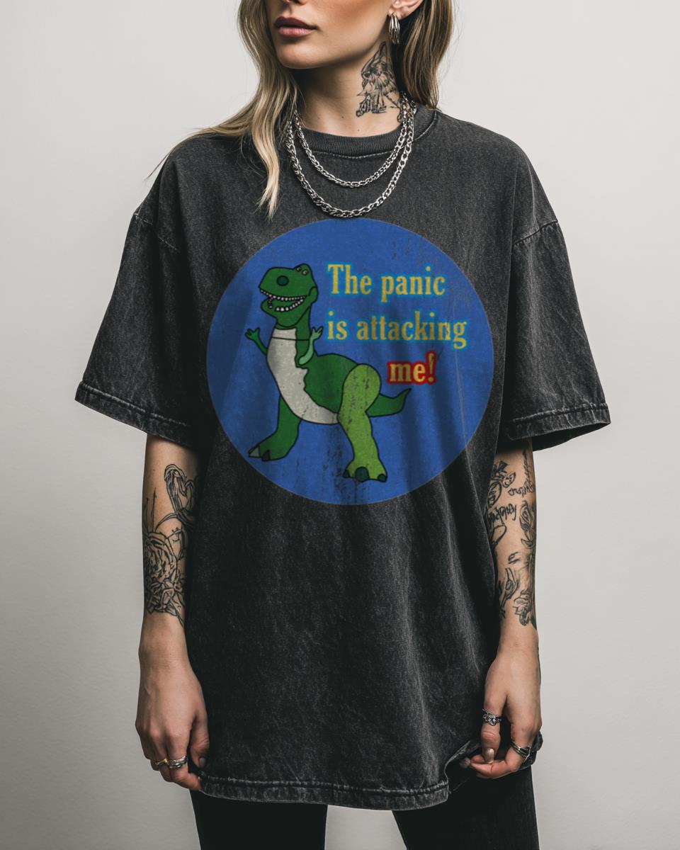 Do you sometimes feel like a dinosaur having a panic attack? This hilariously relatable T-shirt captures the feeling of overwhelming anxiety with a touch of playful humor, featuring a classic cartoon dinosaur in distress. It’s a lighthearted take on a serious topic, offering a way to express your feelings with a smile and perhaps connect…