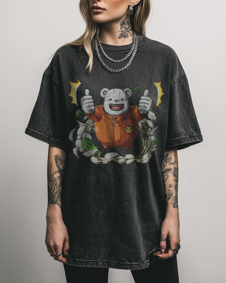 Ready to sail the Grand Line with the Heart Pirates’ beloved Bepo? Show your loyalty to Captain Law and the Heart Pirates with this adorable Bepo design! This tee features the fan-favorite polar bear mink, giving a cheerful thumbs-up, perfect for any One Piece anime and manga enthusiast. Why You’ll Love This Bepo Anime Tee:…