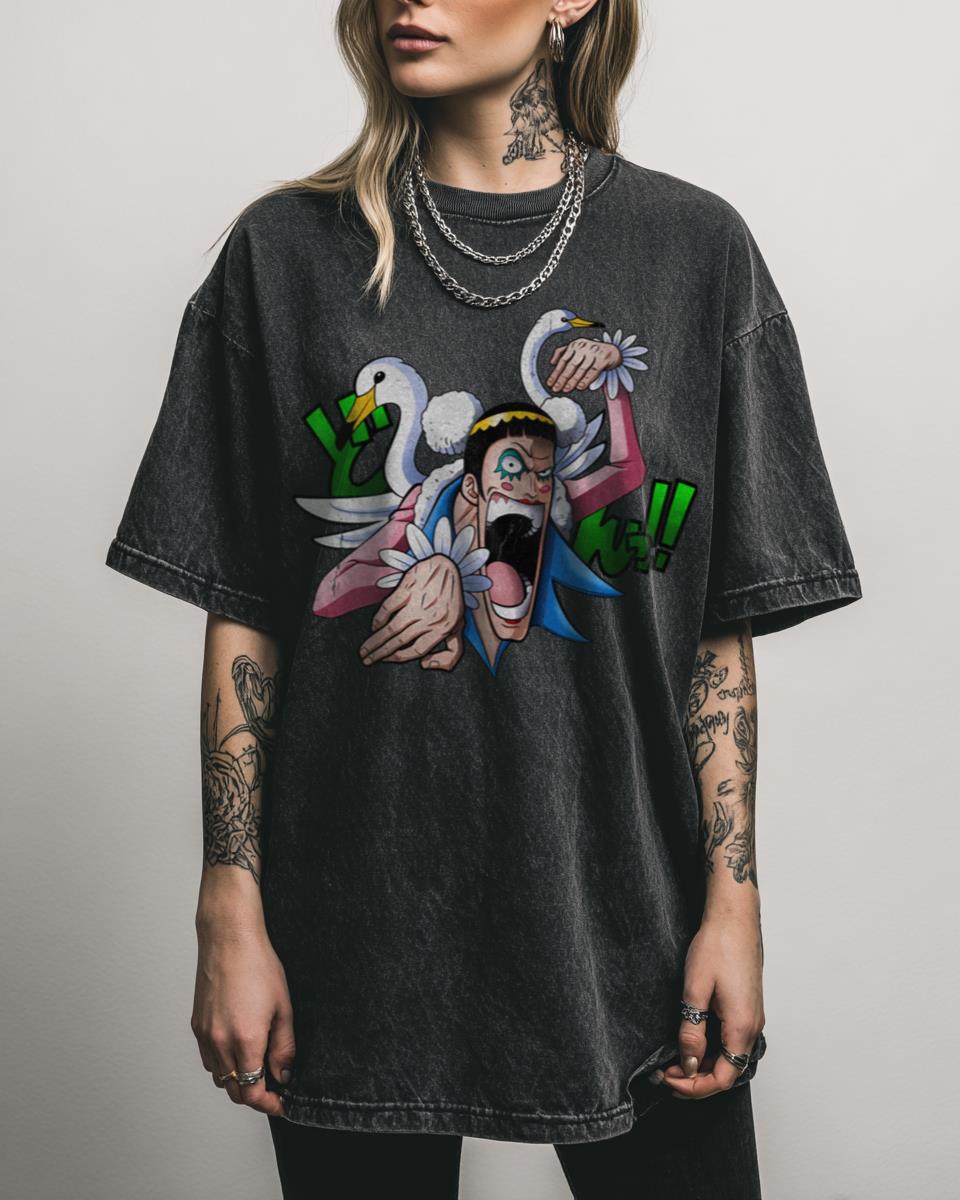 Are you a true fan of the One Piece grand adventure? Celebrate the unforgettable Bon Kurei with this vibrant design from the ‘One Piece’ anime series. Featuring the iconic Okama and Newkama Land themes, this graphic tee captures the unique spirit of Baroque Works and the Mane Mane No Mi fruit, perfect for any devoted…