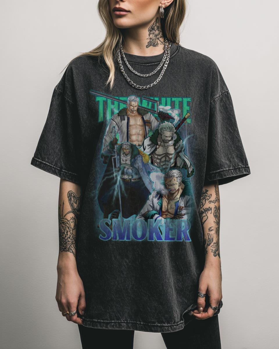 Ready to sail the Grand Line with a unique One Piece design? This “Bootleg Anime One Piece Smoker” graphic offers a distinctive take on the iconic Marine Captain. Perfect for fans of Luffy, Zoro, Nami, and the entire Straw Hat Pirate crew, this design brings a touch of edgy anime style to your wardrobe, celebrating…