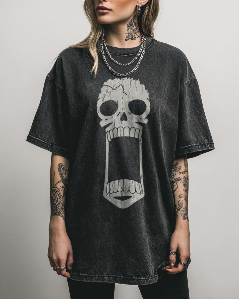 Are you a devoted fan of One Piece’s charming musician, Brook? Celebrate the ‘Soul King’ with this adorable Black Acidwash T-Shirt featuring a Chibi Brook design, inspired by his Wano arc appearance and popular Funko Pop style. This graphic perfectly captures Brook’s unique personality, making it a must-have for any Straw Hat Pirates enthusiast. Why…