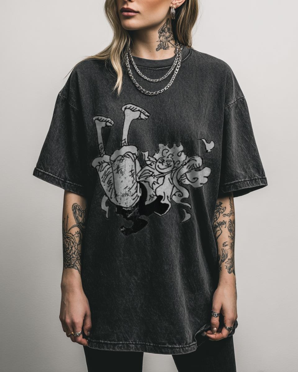 What Defines This Luffy Gear 5 Sun God Nika T-Shirt? Channel the liberating power of Joyboy with this Luffy Gear 5 Sun God Nika T-Shirt, a tribute to the legendary Monkey D. Luffy. This classic, fan-created design celebrates Luffy’s Gear 5 awakening from the One Piece saga, presented on a unique black acidwash 100% cotton…