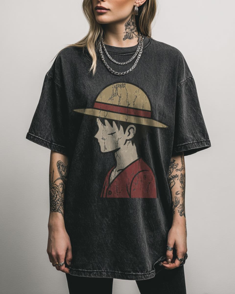 Wear the Symbol: Luffy’s Straw Hat One Piece T-Shirt! Carry the spirit of adventure with this Luffy’s Straw Hat One Piece T-shirt, featuring the iconic emblem of the future Pirate King. This fan-created graphic tee, with its stylish black acidwash, is the perfect way for any anime fan to show their dedication to Monkey D….