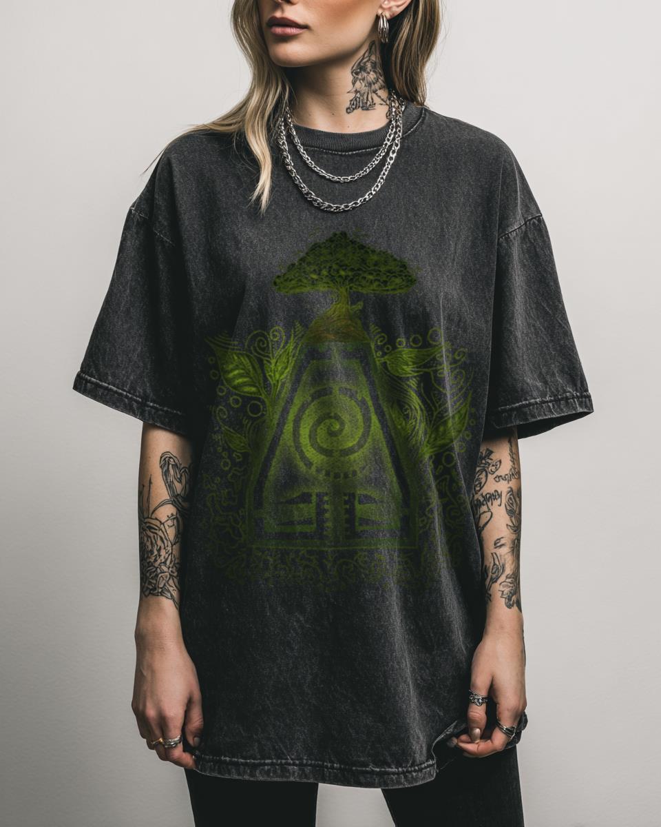 What Does This Tribal Earthbending T-Shirt Represent? Show your allegiance to the Earth Kingdom with this powerful Tribal Earthbending Symbol T-shirt. Inspired by the iconic bending art from Avatar: The Last Airbender and Legend of Korra, this acidwash graphic tee is a must-have for fans of Toph, Bolin, and the strength of the earth element….