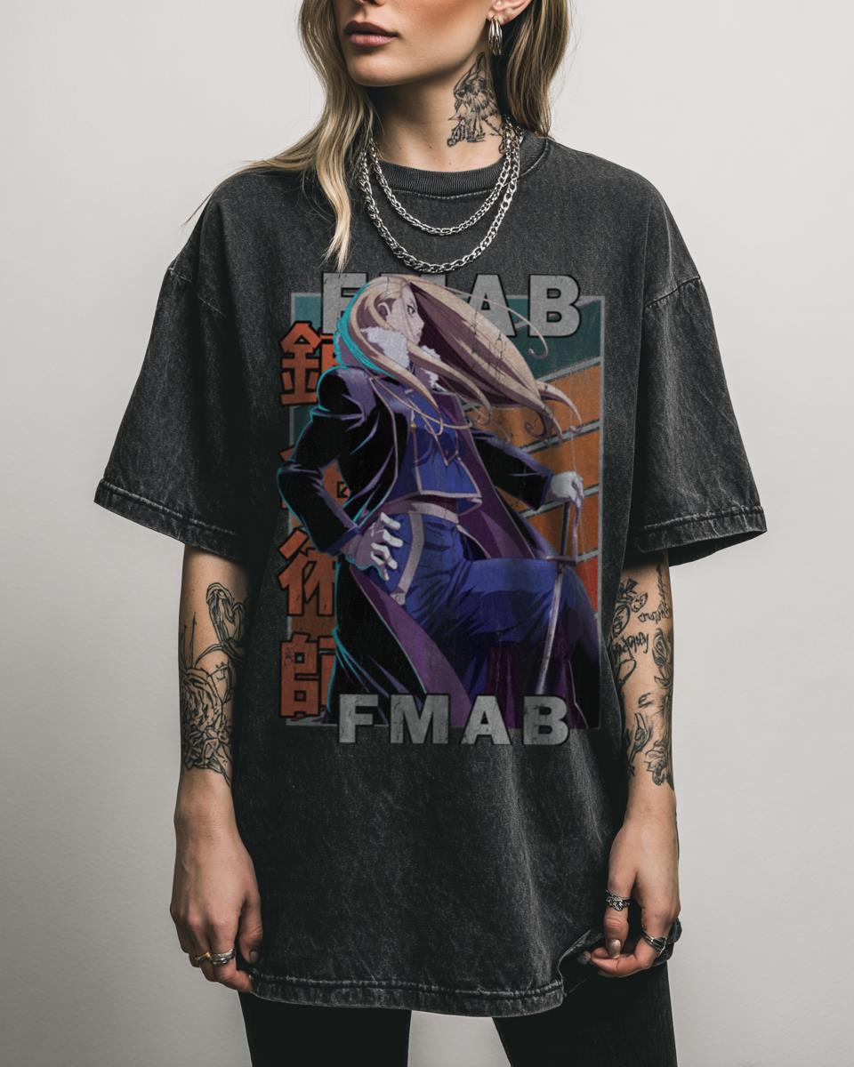 Are you a devoted fan of the formidable Major General Olivier Mira Armstrong? Command attention with this “Olivier Mira Armstrong” design, inspired by Fullmetal Alchemist Brotherhood! Featuring the iconic “Ice Queen” in a retro color stripe style, this tee is perfect for fans of FMA, Hagane no Renkinjutsushi, and strong female characters. A powerful tribute…