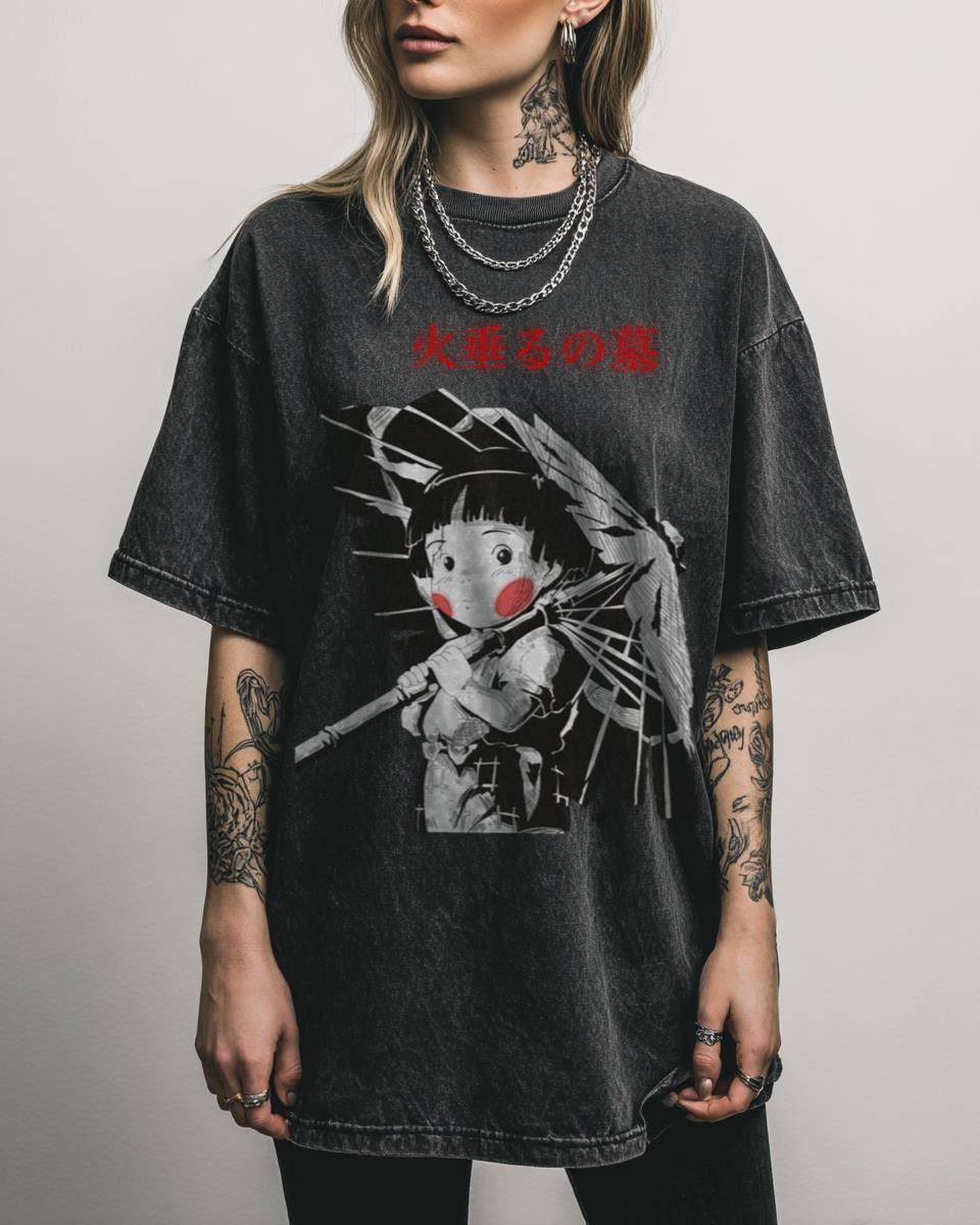 Do you cherish the poignant storytelling and beautiful animation of Studio Ghibli? This heartfelt ‘Hotaru no Haka’ design pays tribute to the profound and moving Studio Ghibli film, ‘Grave of the Fireflies’. Capturing the film’s aesthetic with a touch of vintage charm and kawaii appeal, it’s a touching piece for fans of Hayao Miyazaki’s masterpieces…