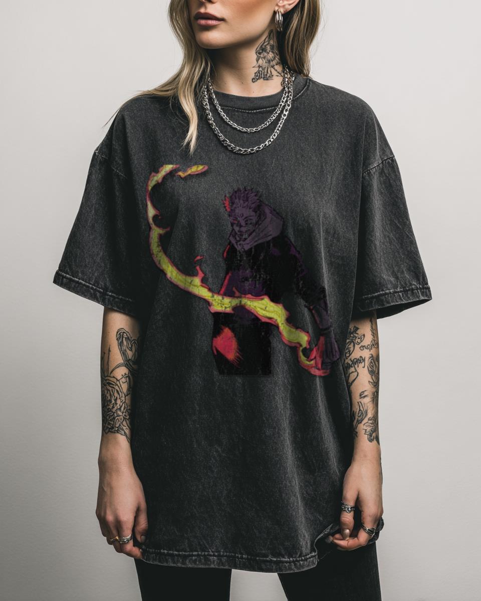 What Makes This Jujutsu Kaisen Sukuna Tee Stand Out? Command attention with this powerful **Jujutsu Kaisen Sukuna T-shirt**, showcasing the King of Curses in a dynamic graphic. This fan-inspired anime tee, featuring a bold design on a distinctive black acidwash background, is essential wear for any devoted JJK manga and anime fan. Highlights of Your…