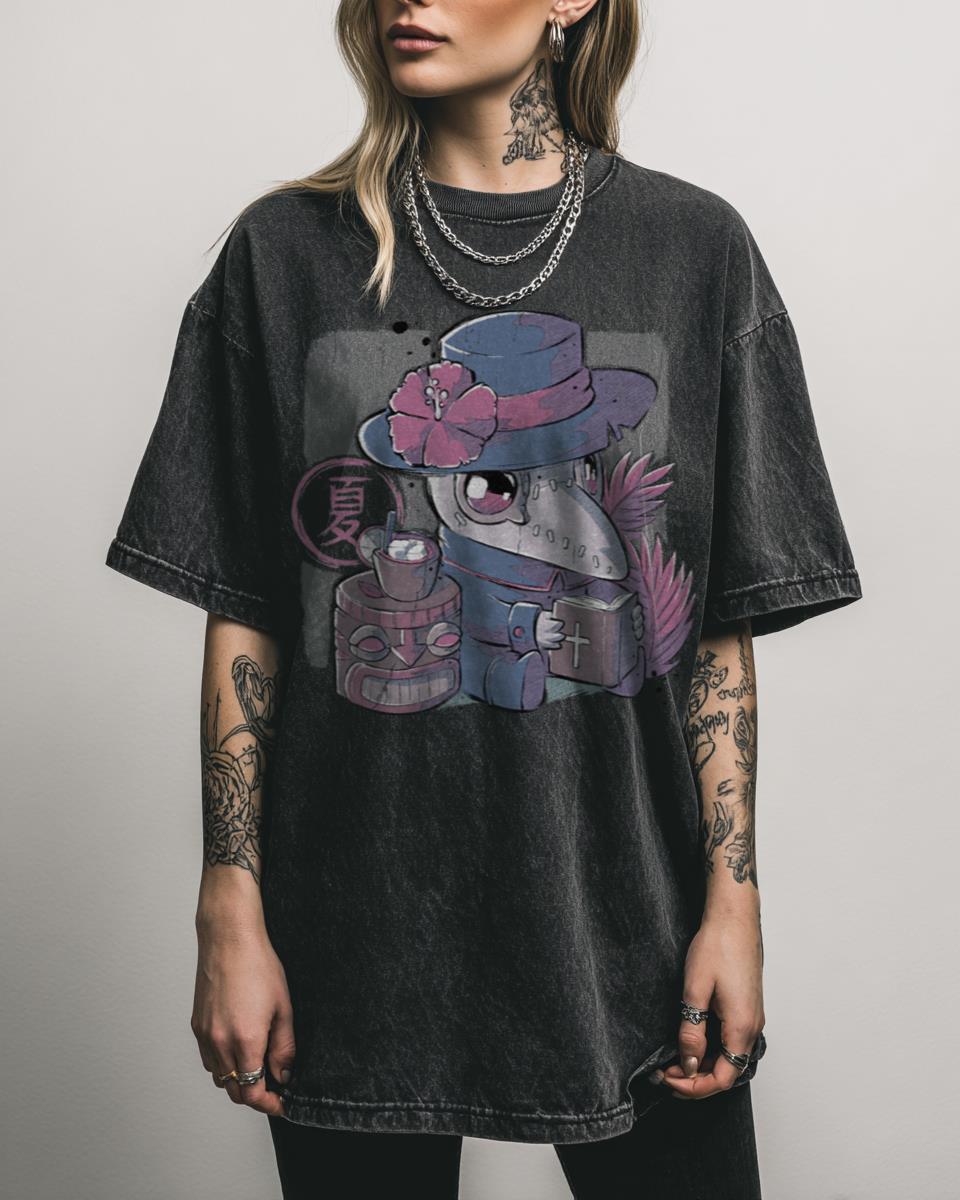 Looking for a unique blend of spooky and sweet for your summer wardrobe? This “Summer Plague Doctor” design brings a delightfully creepy-cute twist to the season. Featuring a kawaii plague doctor in a summer-themed, possibly tiki-inspired setting, it’s perfect for those who embrace dark art with a touch of adorable goth charm. Why You’ll Love…