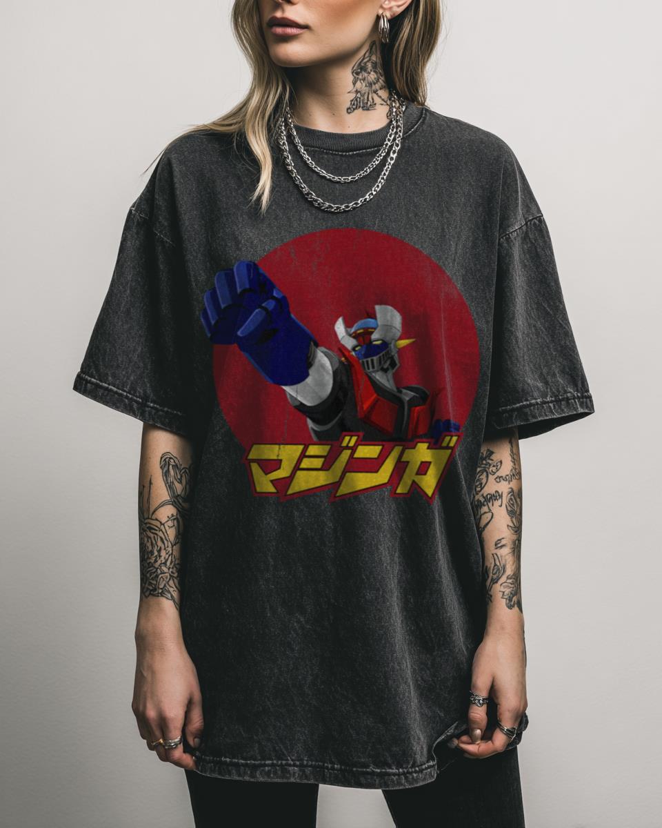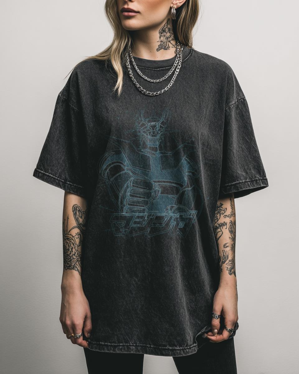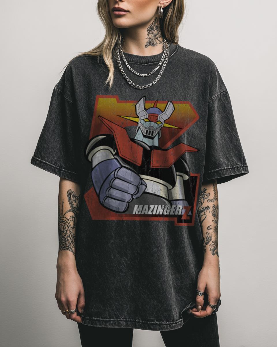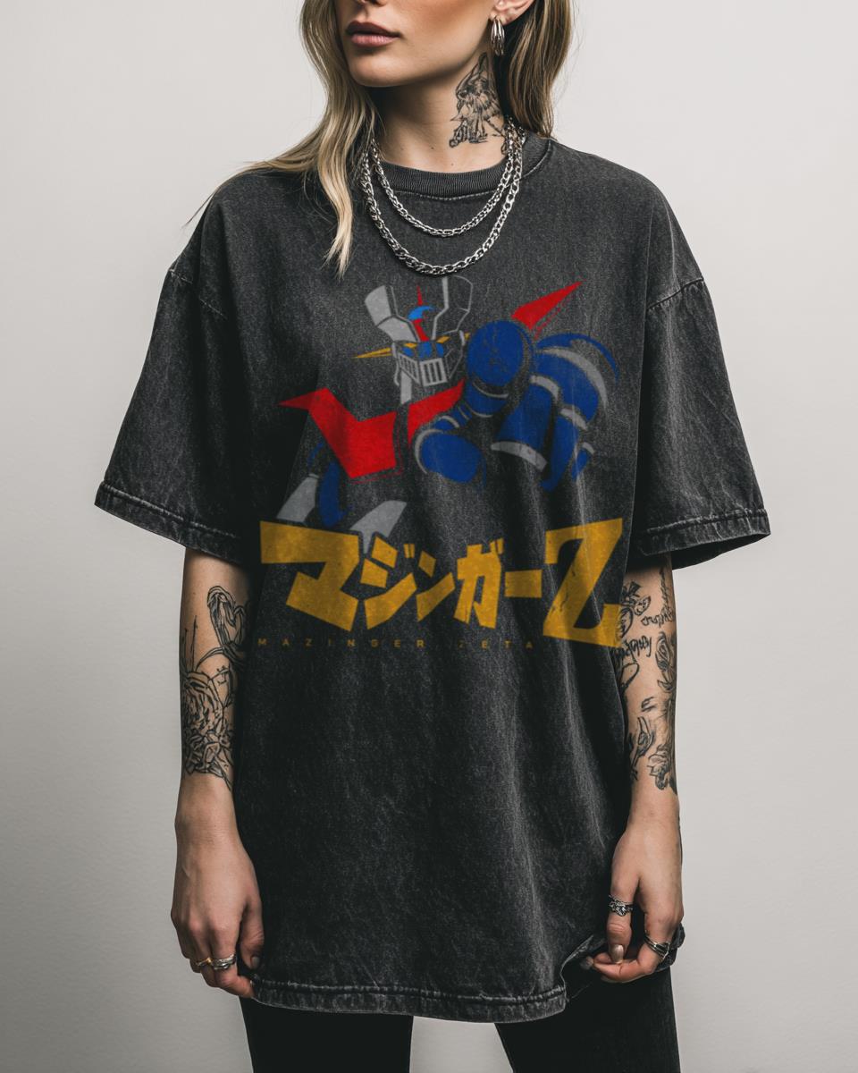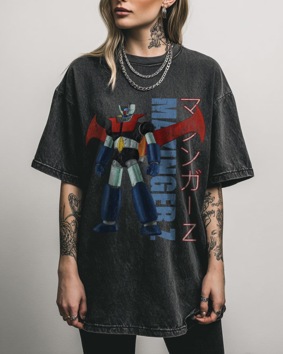 Why This Mazinger Z Band Logo T-Shirt is a Mecha Anime Fan Favorite? Rock out with the power of the super robot with this “Mazinga Band” T-shirt, a fan-created design that reimagines **Go Nagai’s Mazinger Z** as a classic rock band logo. Featuring a bold, printed graphic on unique black acidwash fabric, this tee is…