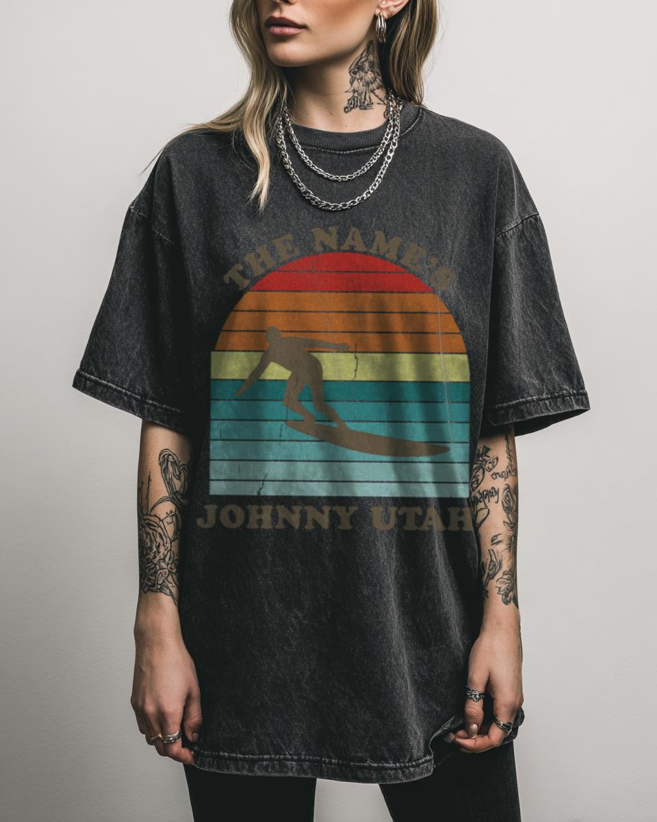 Why This Johnny Utah T-Shirt is a Point Break Fan Favorite? Channel your inner FBI agent with this Johnny Utah T-Shirt, featuring the iconic quote from the 80s cult classic film, Point Break. This dynamic graphic tee, with its distinctive black acidwash finish, is perfect for fans of action, surfing, and legendary movie lines. Features…