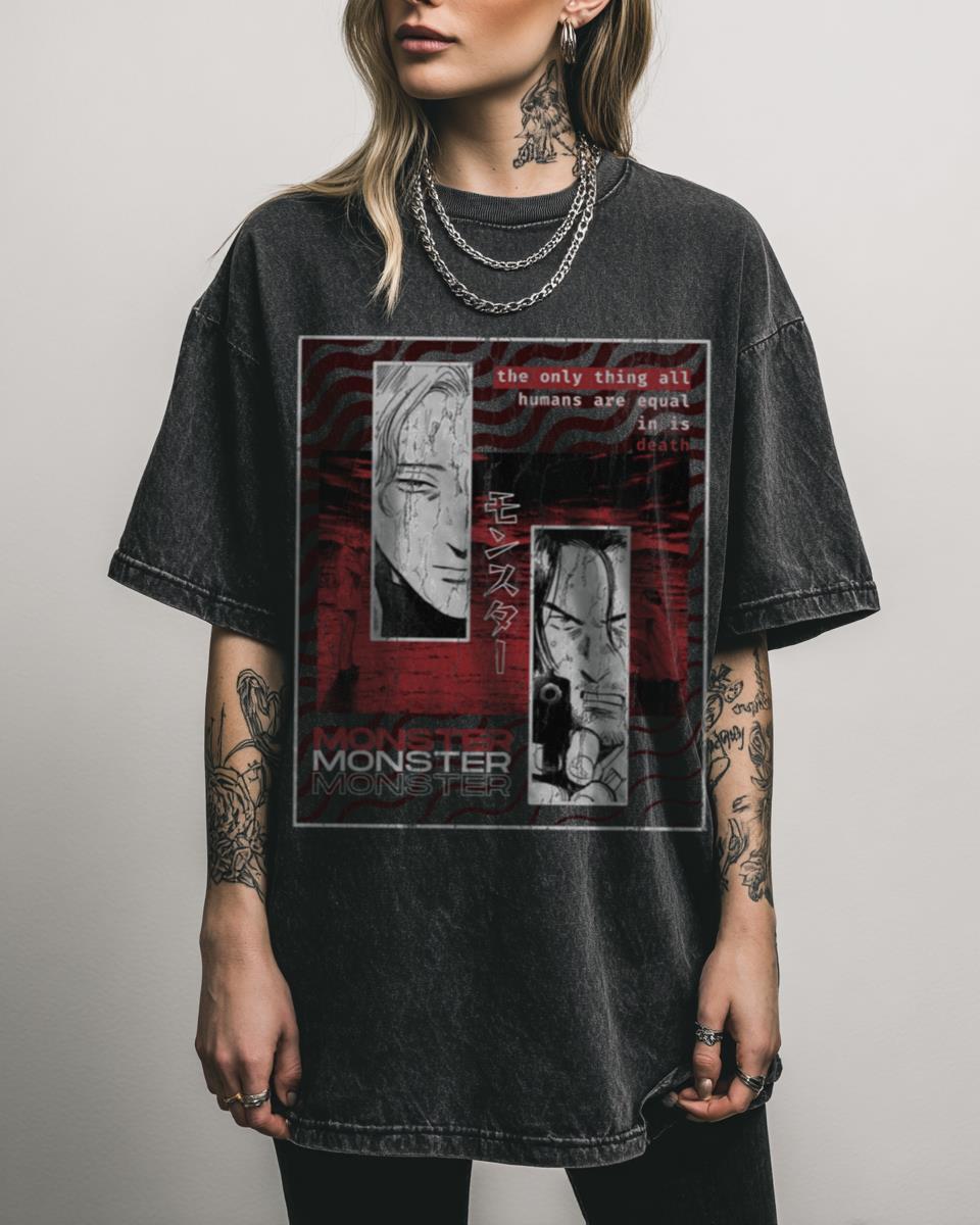 Seeking a “Monster” Anime Johan & Tenma T-Shirt? Delve into the chilling world of Naoki Urasawa’s masterpiece with this Monster Anime T-Shirt, featuring the complex duo, Johan Liebert and Dr. Kenzo Tenma. This black acidwash graphic tee is perfect for Monster manga fans and enthusiasts of psychological thrillers, showcasing iconic characters. Why This Johan &…